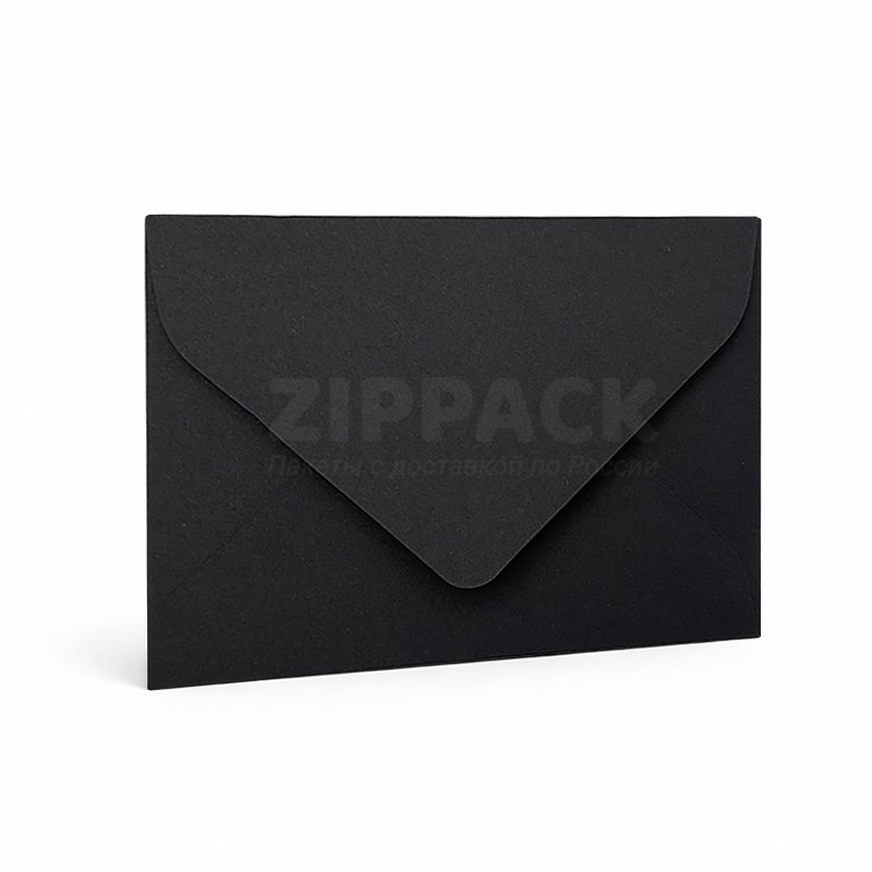 Черный конверт С6 114х162 мм | 150 гр./м2 | Треугольный клапан с лентой