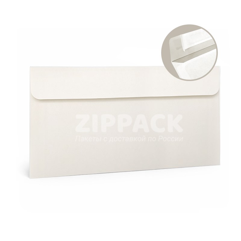 Конверт слоновая кость С65 114х229 мм | Матовый офсет 90 гр./м2 | Лента